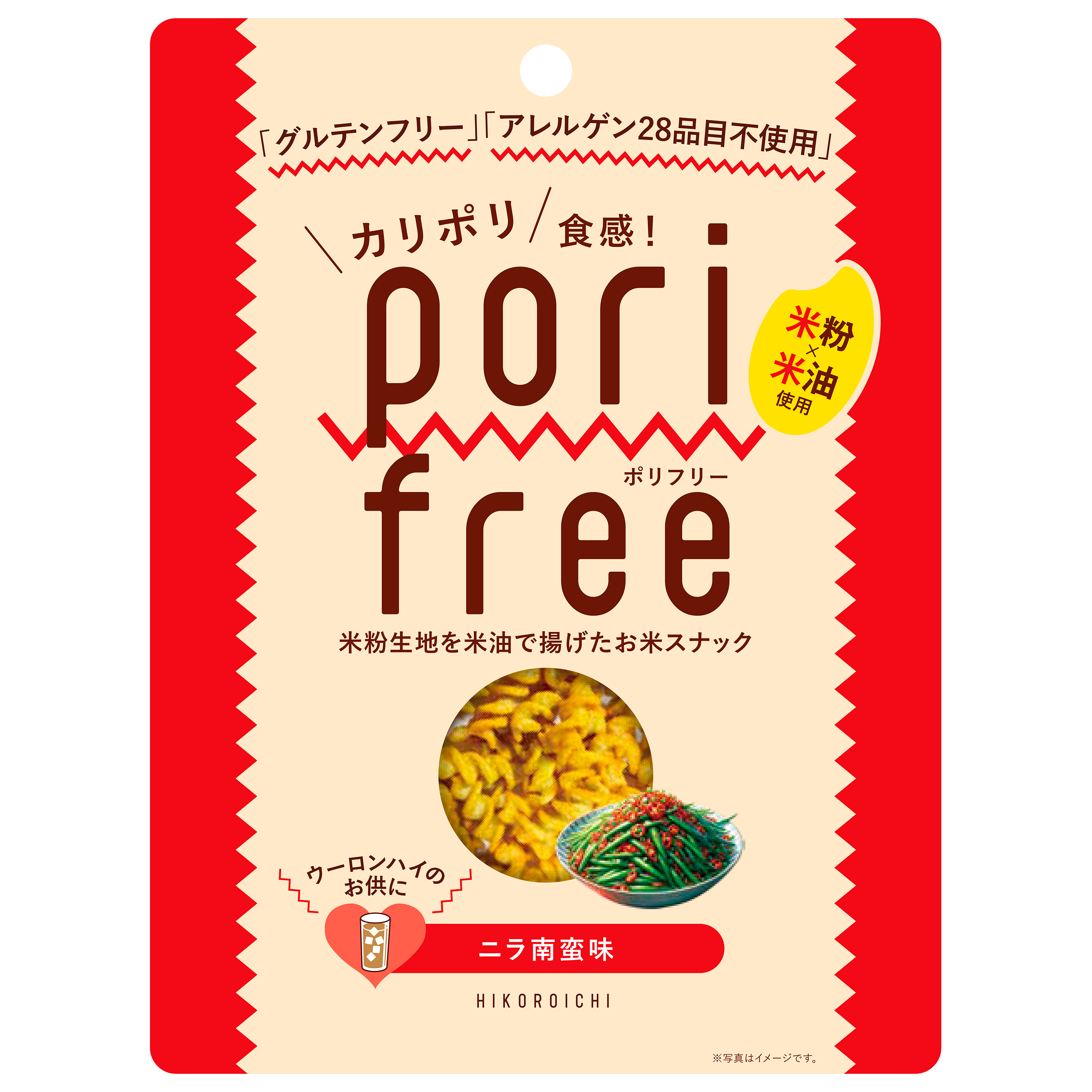 ひころいちファーム ポリフリー(お米のスナック) ニラ南蛮味は、岩手産米100%使用の自然食品です。 ニラの風味としっかりとした唐辛子の辛み