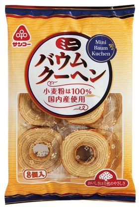 サンコー サンコーミニバウムクーヘンは、国内産小麦を使用した自然食品です。