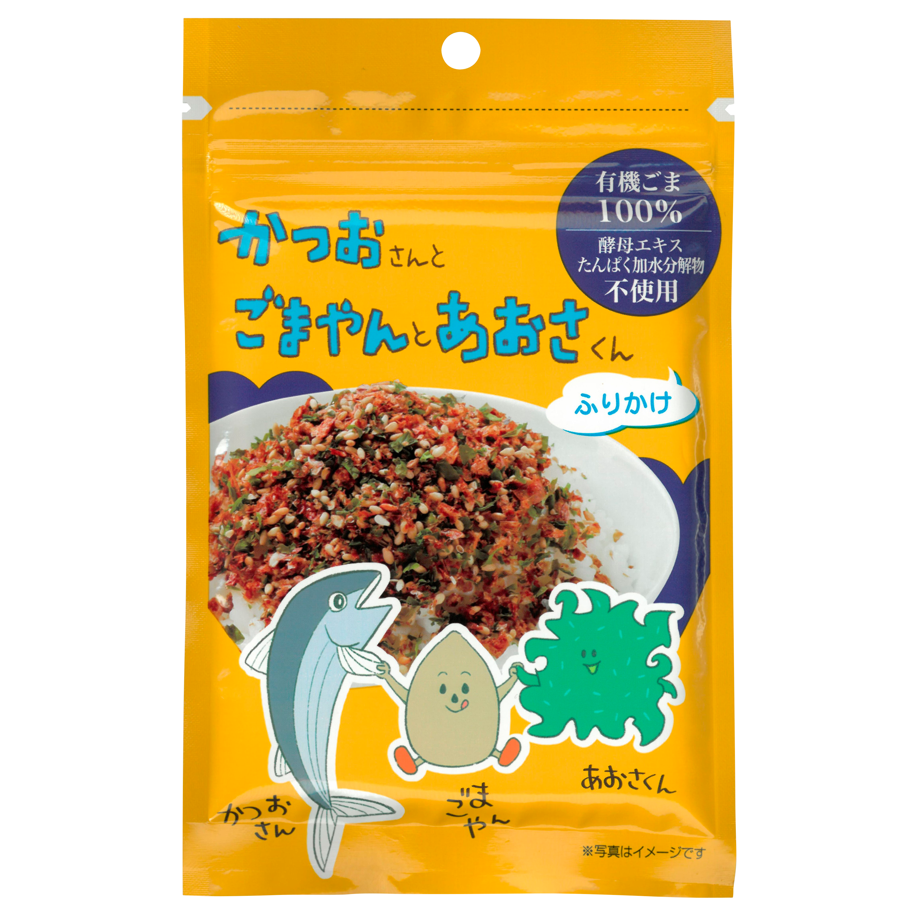 和田萬 かつおさんとごまやんとあおさくんふりかけは、有機ごま使用 醤油で味付けした鰹節とごまの旨み サクサクとした食感