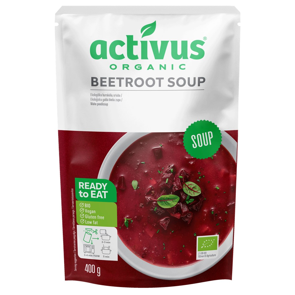 むそう activus オーガニックビーツスープは、有機JAS認定のオーガニック食品です。赤色のビーツ(甜菜大根)を贅沢に使った東欧の代表料理、ボルシチスープ。じゃがいもや人参などの野菜が入り、トマトの旨味で食べやすく仕上げました。【有機JAS認証品】