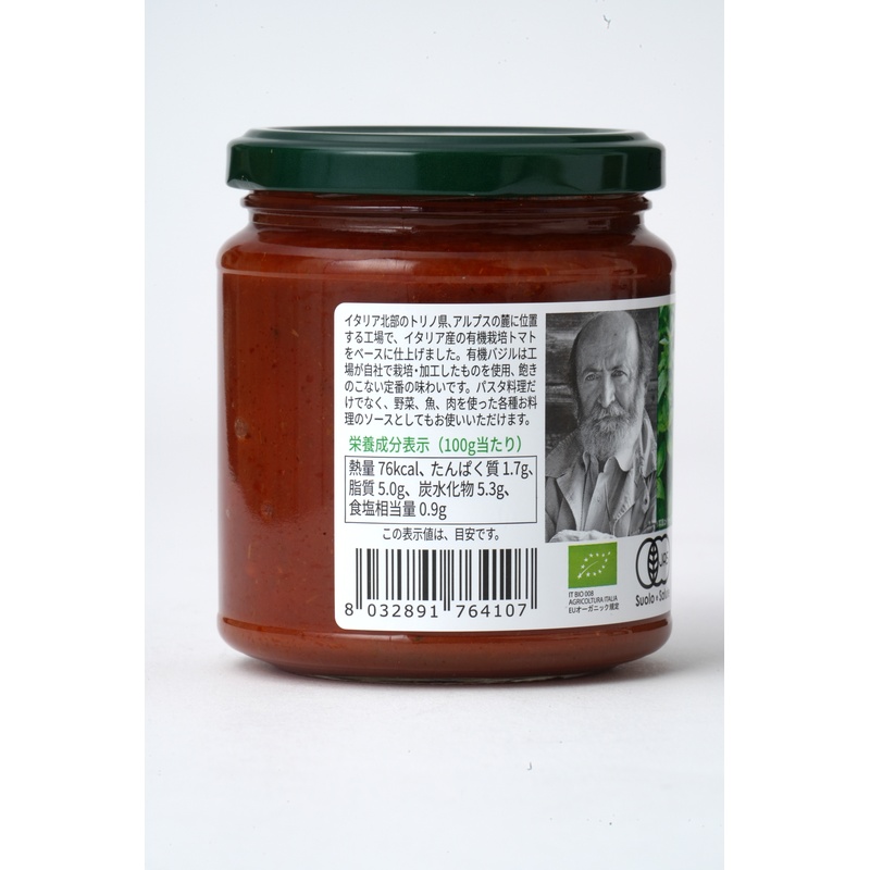 イタリア北部のトリノ、アルプスの麓に位置する工場で、イタリア産の有機栽培トマトをベースに仕上げました。有機バジルは工場が自社で栽培・加工したものを使用、飽きのこない定番の味わいです。