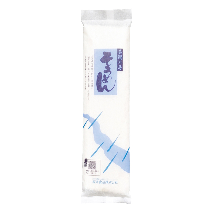 桜井食品 そうめんは、厳選された国内産(岩手県)小麦を100%使用し、熟達した製法で丁寧に仕上げた自然食品です。乾燥時間をじっくり取っているためコシがあります。