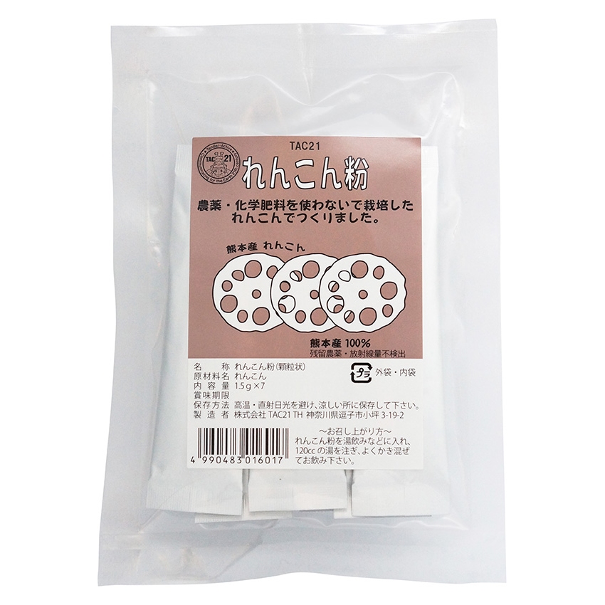 TAC21 れんこん粉は、無農薬栽培、熊本産の味が良い在来種のれんこんを皮や節までまるごと使用。